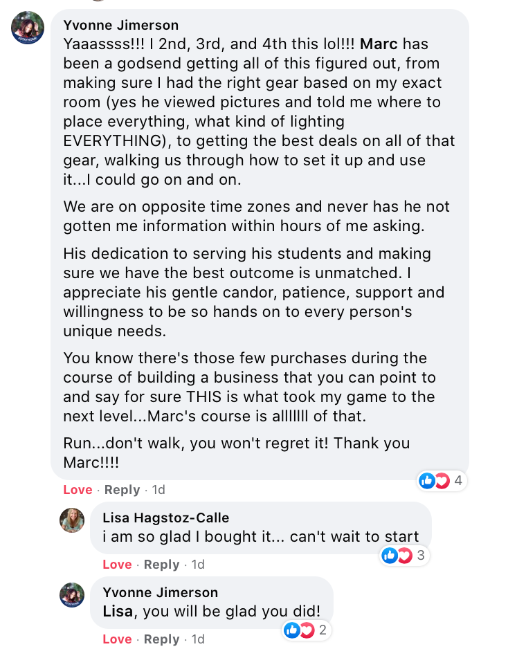 - Best practices on how to record your videos to avoid having to spend hours editing later. (I’ll even show you how to record, so you don’t have to edit afterwards at all!)