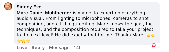 Hey, my name is Marc Muehlberger and I'm a professional filmmaker for 15 years, portrait photographer for 9 years, and portrait artist for 30 years.